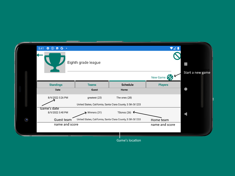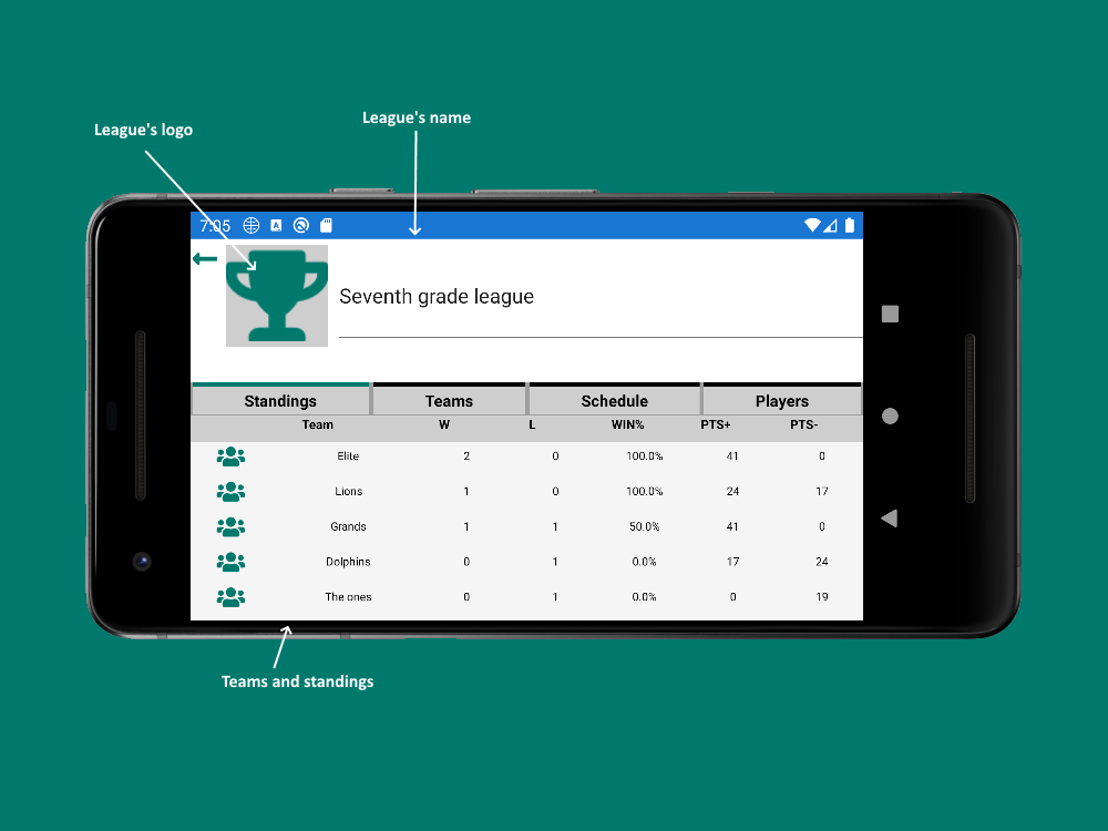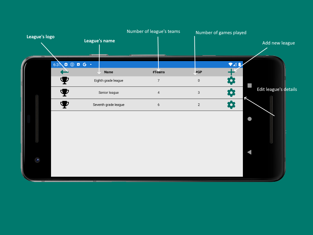 The app assists with collecting, storing, and sharing players' and teams' statistics, managing leagues - standings, games history, top players and so.